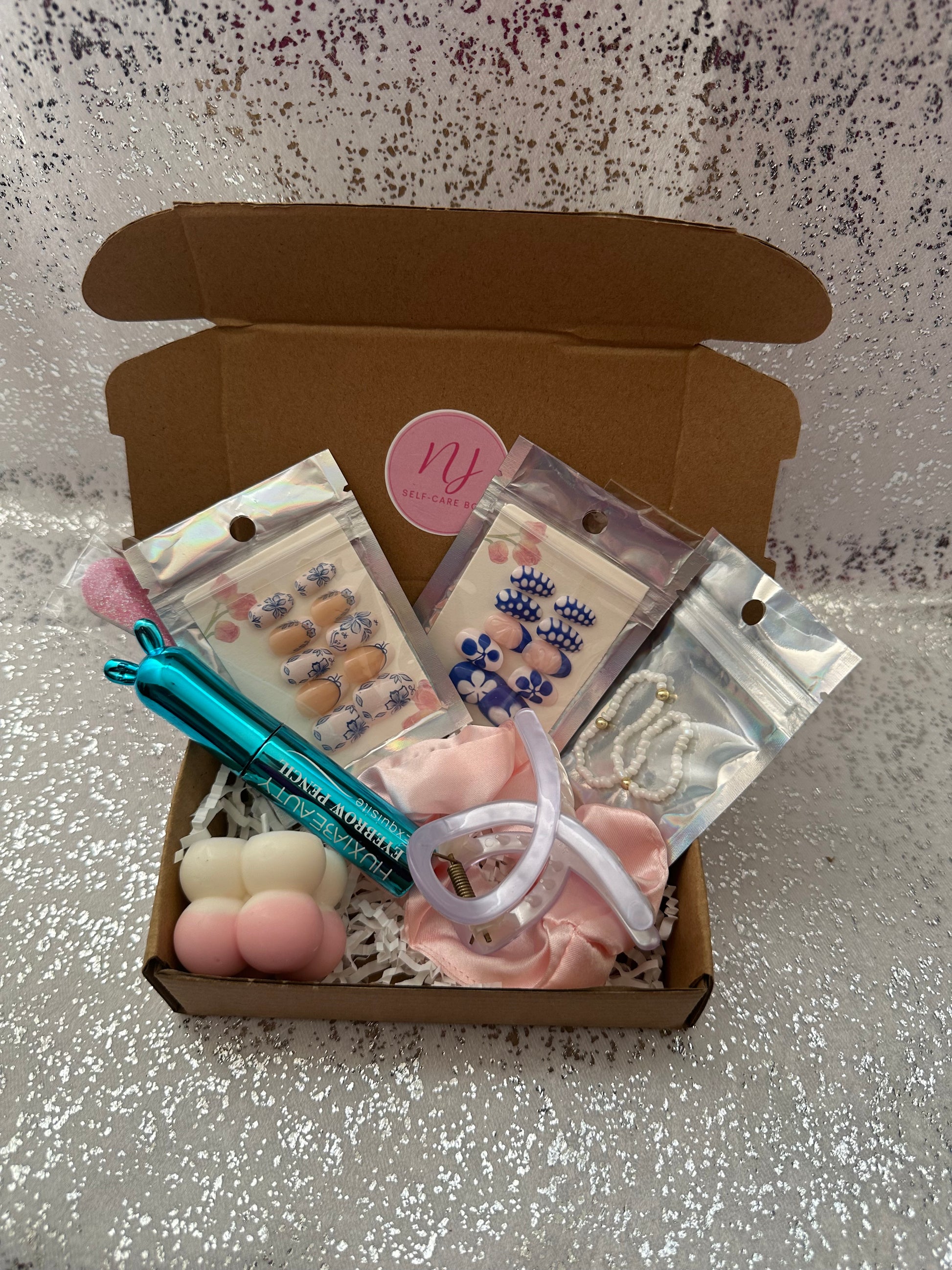 - 💅 Press-on Nails (3 Designs) – Floral, blue, and neutral styles.
